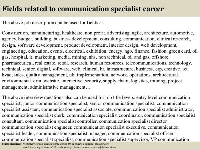 Top 17 Communications Specialist Interview Questions Answers . The Top 10 Interview Questions Asked In Job Interviews.