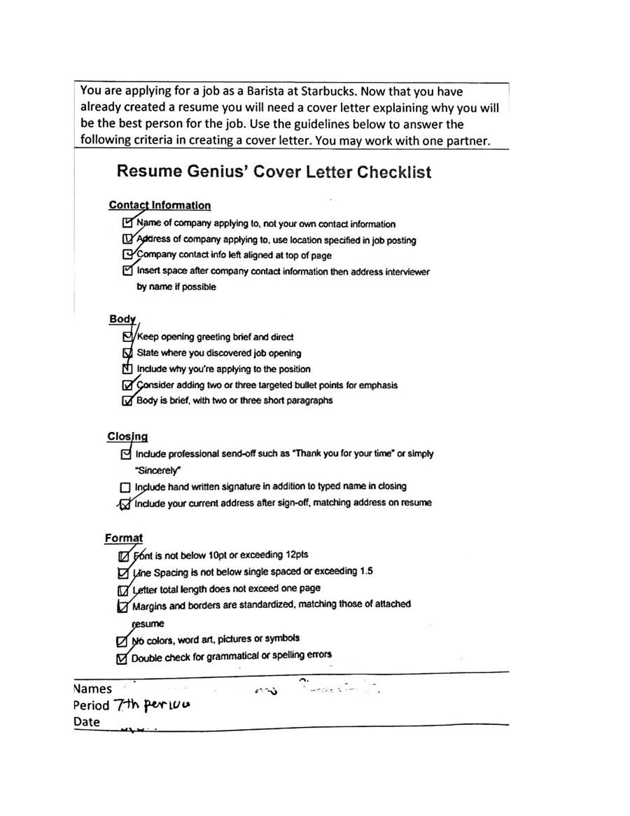 Cover Letter Activity Sheet By Angela Benton Flipsnack - View A Real Cover Letter For The Starbucks Full Time Position, Barista.
